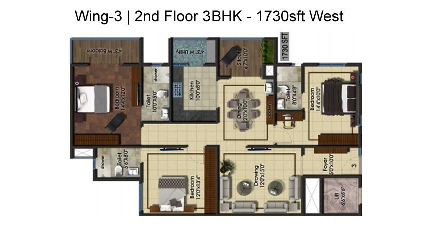 3 BHK+3T(1,730 Sq Ft)₹ 91.67 L*