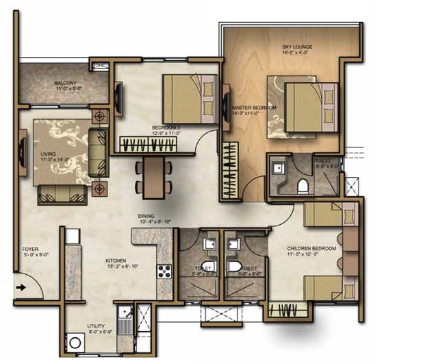 3 BHK+3T(1,660 Sq Ft)₹ 1.05 Cr*