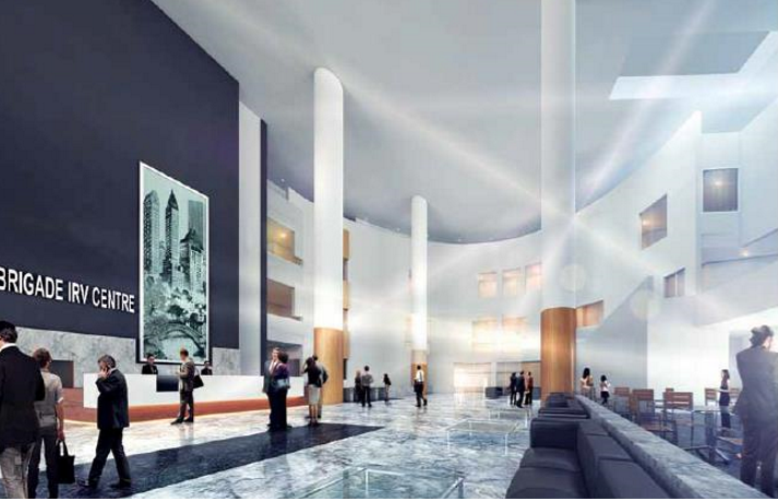 Brigade IRV Centre in the IT hub of Bangalore, Whitefield. The building is just 2kms away from ITPL (International Tech Park Limited) and Varthur Main Road and 1km away from the proposed metro station. The star hotels like Marriot, Taj Vivanta,Lemon Tree, Ginger, The Zuri etc are located with in the 2 km radius of the building. The specifications & facilities provisioned in the building would match any international A+ standard development. Brigade IRV Centre is pre-certified for LEED GOLD rated building for Core and Shell by IGBC. The G+10 tower having a total build up area of 2.6 Lakh square feet is equipped with 100%power back up, ample car parking, high speed elevators etc. Office spaces ranging from 2820 Sq Ft to 12000 Sq Ft is available for investment.