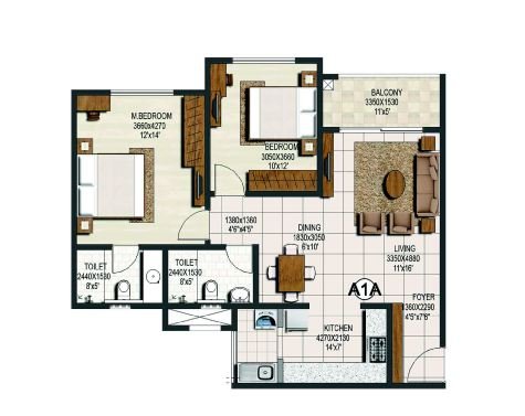 2 BHK+2T(1,170 Sq Ft)₹ 47.27 L*