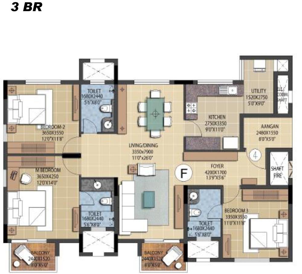 3 BHK+3T(2,221 Sq Ft)₹ 1.28 Cr*