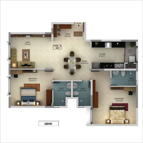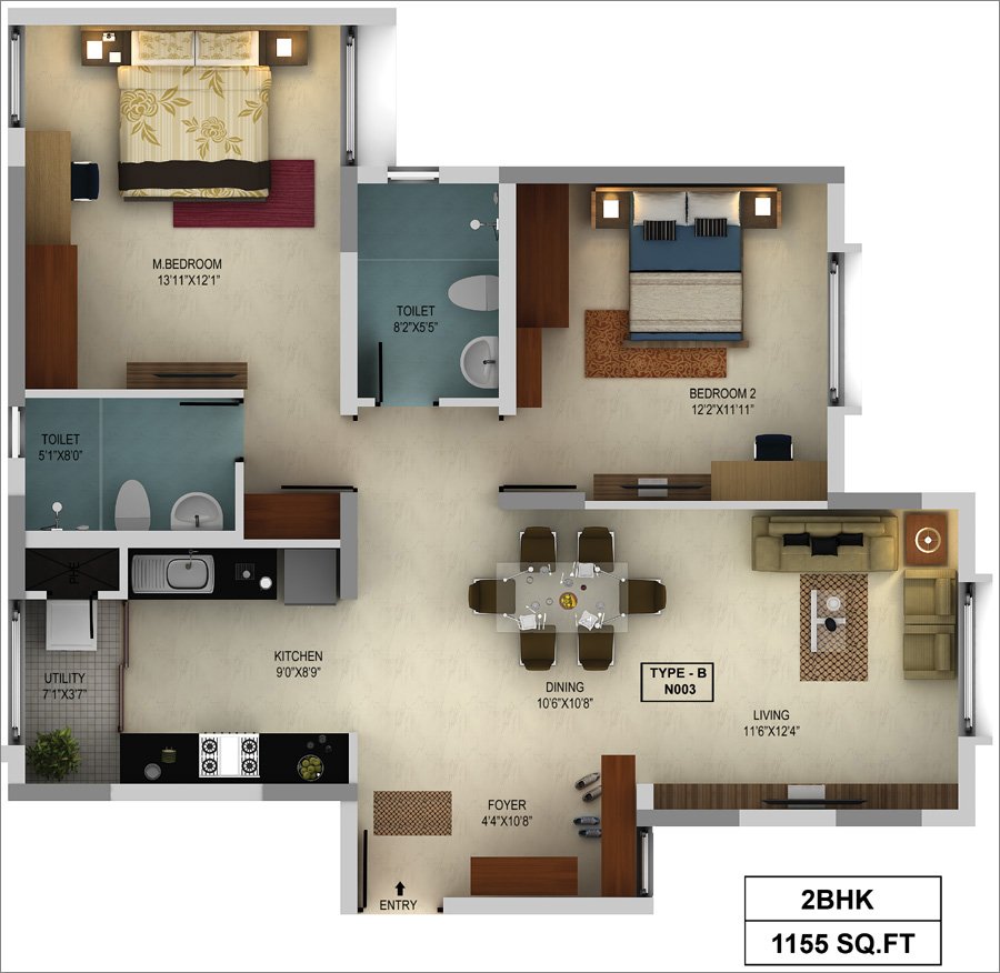 2 BHK+2T(1,155 Sq Ft)₹ 63.41 L*
