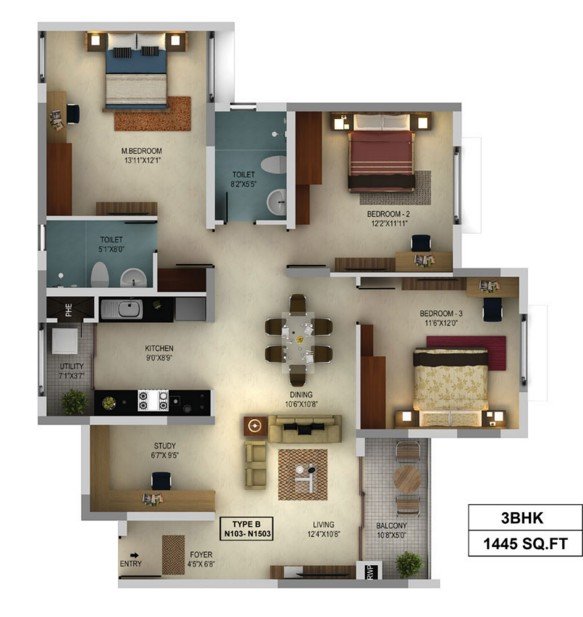 2 BHK+2T(1,445 Sq Ft)₹ 79.33 L*