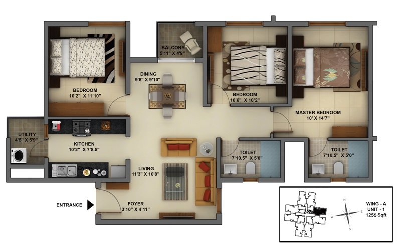 3 BHK+3T(1,225 Sq Ft)₹ 70.93 L*