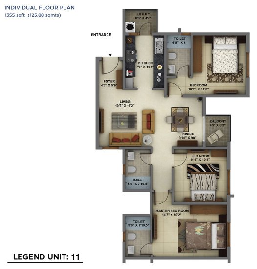 3 BHK+3T(1,355 Sq Ft)₹ 78.45 L*
