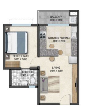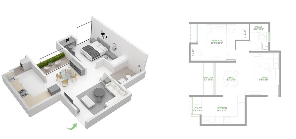 1 BHK+1T(661 Sq Ft)₹ 40.64 L*