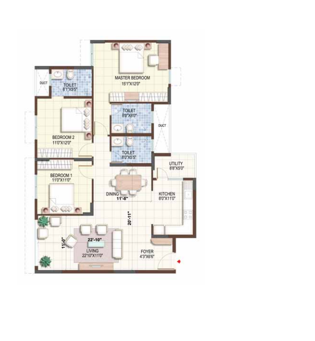 3 BHK+3T(1,795 Sq Ft)₹ 1.43 Cr*