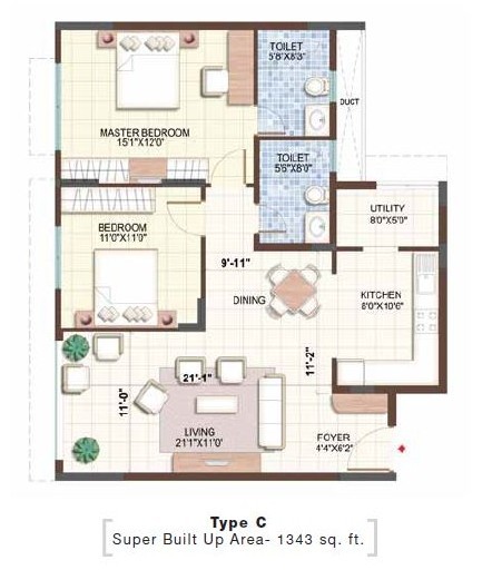 2 BHK+2T(1,408 Sq Ft)₹ 1.12 Cr*